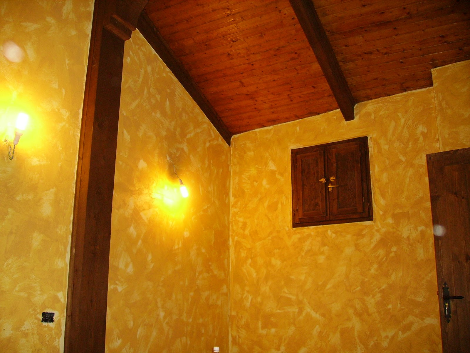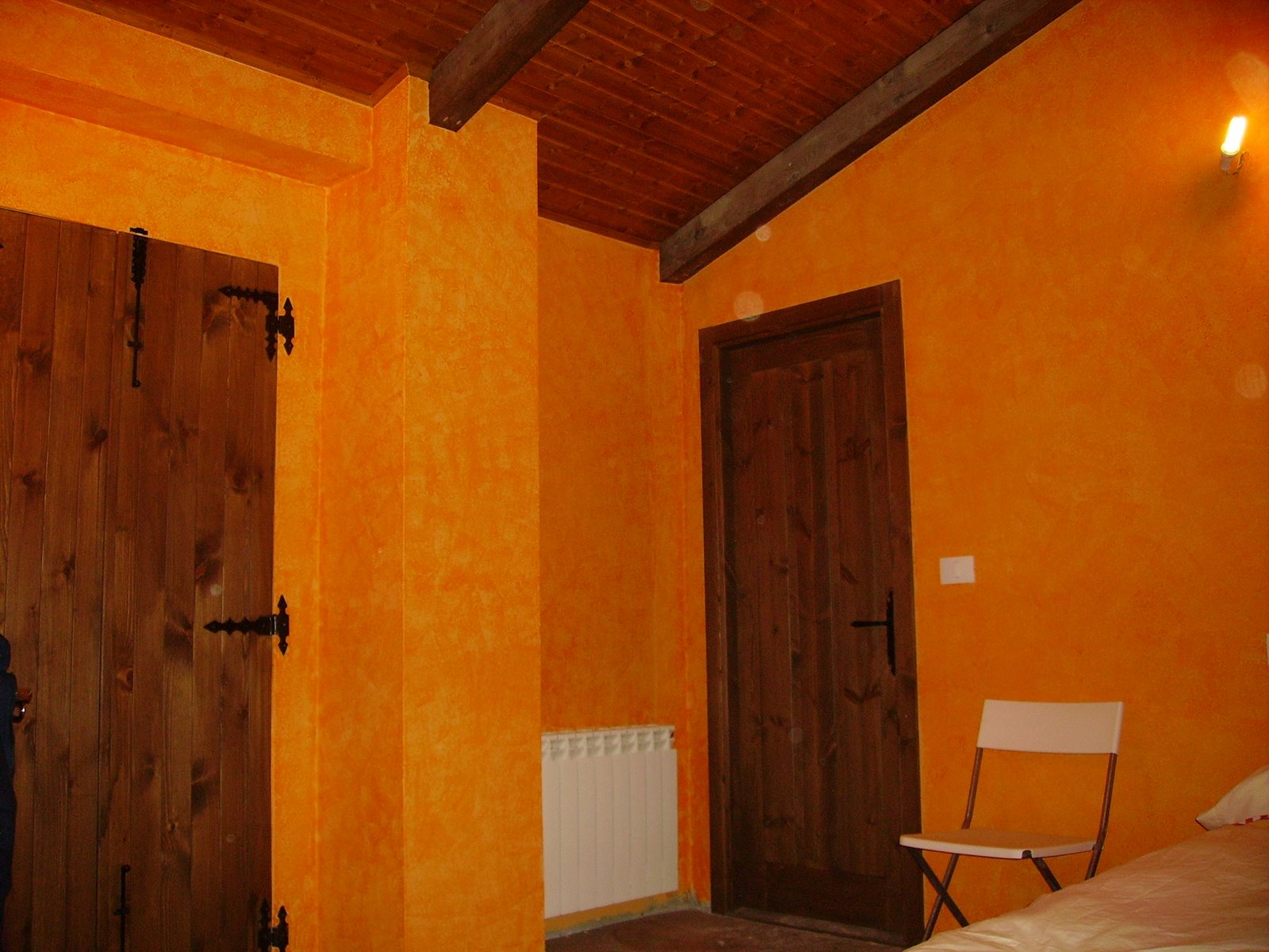 Pintada con fondo platico naranja y veladura naranja mas oscuro, aplicada con una esponja comprada en el leroy merlin.