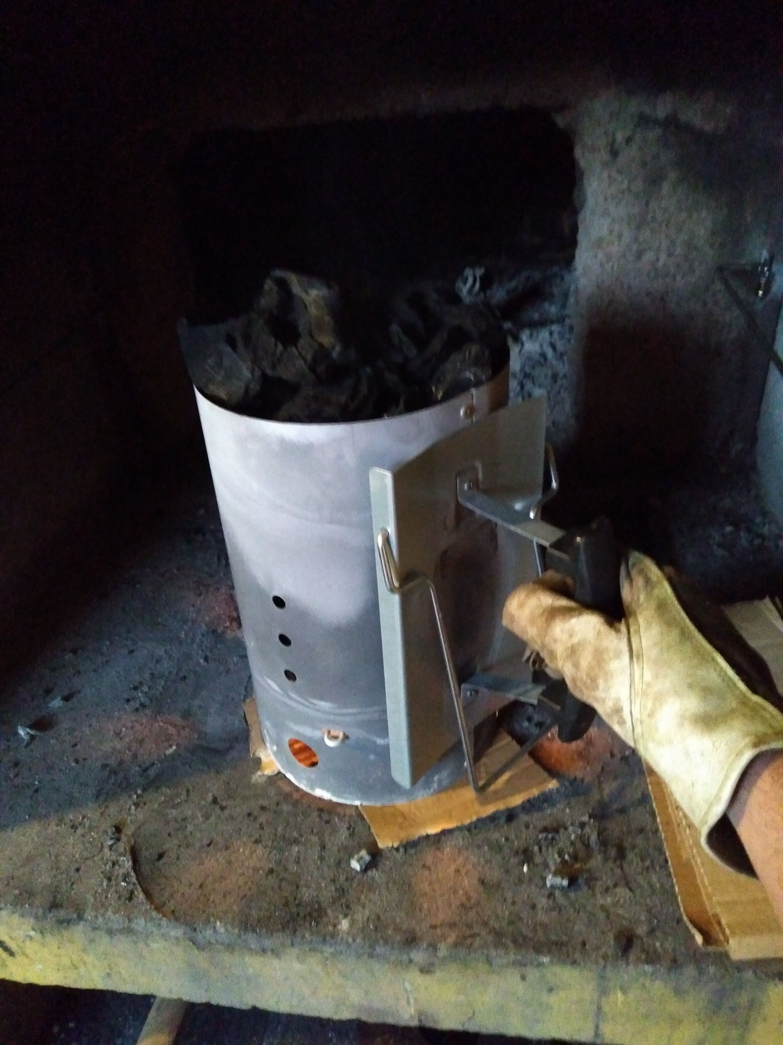 IMPORTANTE: Agarrarlo con guantes de cuero o para BBQ, el mango puede estar muy caliente. En el caso de mi bbq que es grande tengo que vaciarlo casi completo una vez y aprovechando unas pocas ascuas meto mas carbón hasta tener las que creo necesarias (siempre son de más).