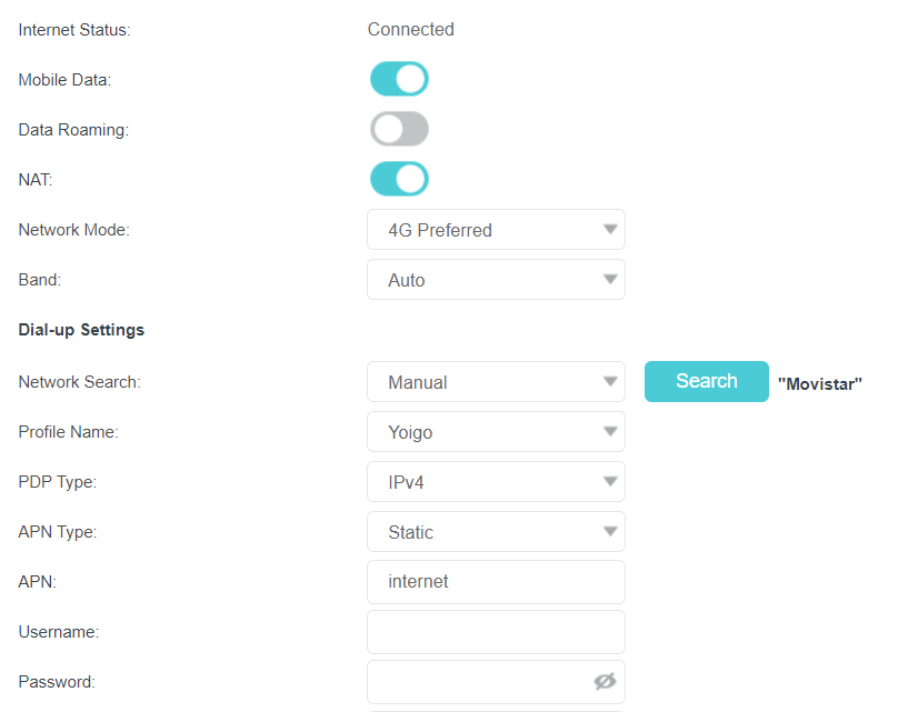 Hoy hice la prueba con una línea adicional de Yoigo que me ofertaron a mitad de precio (16€/mes) y BINGO!!. He tenido que comprar un router 4Gy buscar por toda la casa el lugar idóneo para colocarlo (hasta he buscado fuera de la casa y poco a poco iré buscando un sitio mejor y si hace falta pondré una antena externa aunque tengo que ver cómo paso el cable hasta dentro de la casa). Eso si, me ha costado tres llamadas al 622 para que me habilitaran la red 4G de Movistar en esa línea (por defecto no la habilitan porque les sale mas cara a ellos), después de eso me he tardado un par de horas en llegar a la configuración exacta para que el router coja la cobertura Movistar y no la de Orange por defecto:
