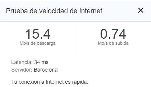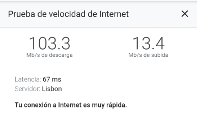 Siguiente paso para cuando no llueva es instalar la antena externa y ver si mejora el resultado hasta la velocidad máxima que he conseguido: