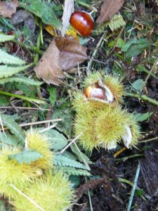 El segundo son las setas y las castañas, sobre setas no tengo ni idea, y la verdad es que la mayoría de las que he fotografiado e identificado creo que son venenosas, más abajo pongo las que he fotografiado a ver si alguien experto me sabe decir el nombre. Pero sobre las castañas….que ricas, en la finca tenemos unos cuantos castaños que al estar cerca del río dan unas castañas gordas y ricas, hay que saber romper el erizo con los pies para poder coger las castañas sin pincharse (o tener guantes duros de cuero). Por cierto que cualquiera que alquile la casa está por supuesto invitado a coger todas aquellas que le apetezcan, total yo ya voy una semana en esta época y recojo el kilo que me basta para todo el año. Por cierto que se celebra el Magosto que es una fiesta tradicional de las más antiguas de España, ese dia toca hoguera,monte y asar castañas con un buen vino cerca para mojarse el morro.